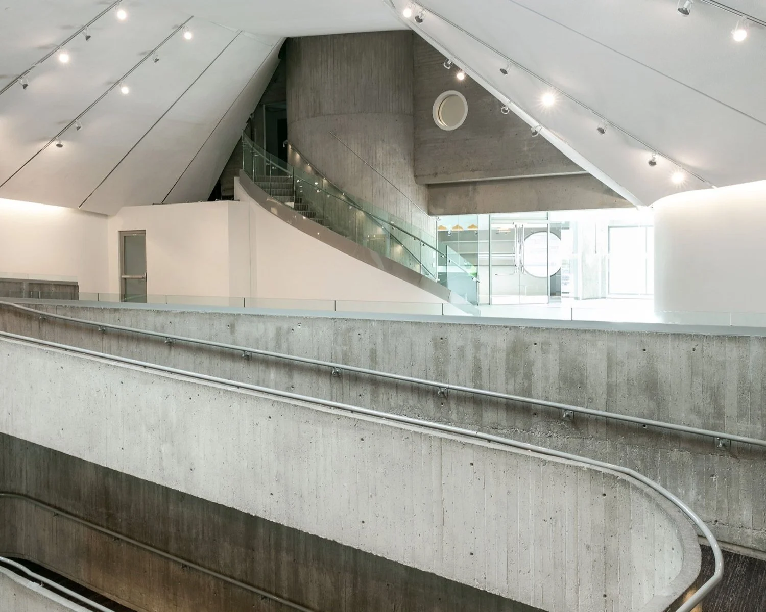 This grand atypical space is a perfect backdrop for a variety of events. From cocktail receptions, concerts, and parties to trade shows and corporate presentations, this distinctive area presents many opportunities for creative experiences. Boasting high ceilings with angled and rounded walls, this unique gathering space with its illustrious ramp in the centre of the action leading to the lower level is a showstopper and conversation starter in its own right.